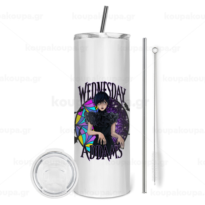 Wednesday Jenna Ortega, Tumbler stainless steel 600ml, with metal straw & cleaning brush