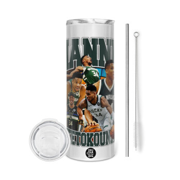 Kylian Mbappé, Tumbler stainless steel 600ml, with metal straw & cleaning brush
