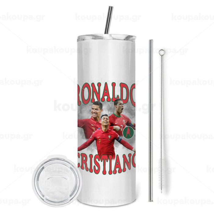 Cristiano Ronaldo, Tumbler stainless steel 600ml, with metal straw & cleaning brush