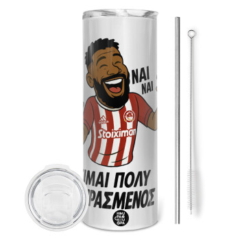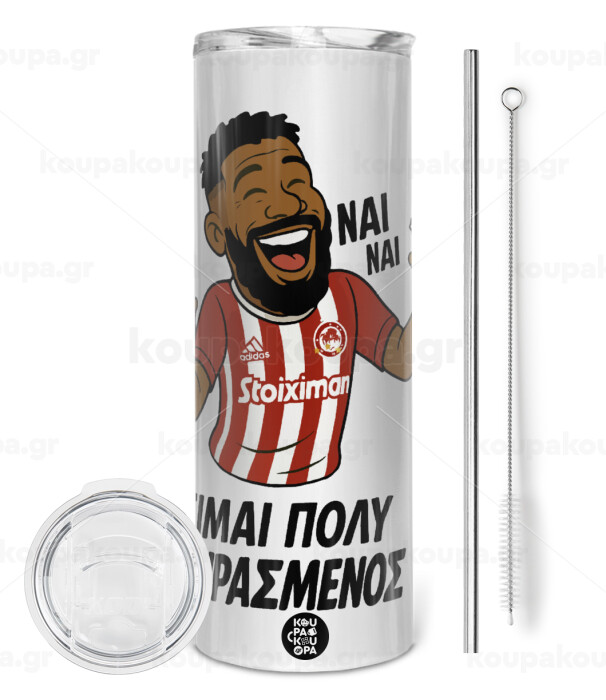 Ροντινέι, "ΠΟΛΥ ΚΟΥΡΑΣΜΕΝΟΣ", Tumbler stainless steel 600ml, with metal straw & cleaning brush
