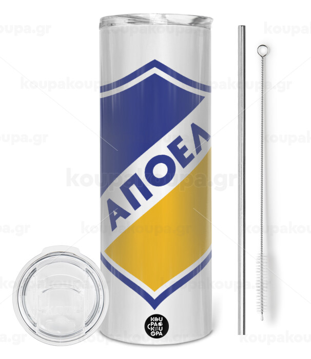FC ΑΠΟΕΛ Λευκωσίας, Tumbler stainless steel 600ml, with metal straw & cleaning brush