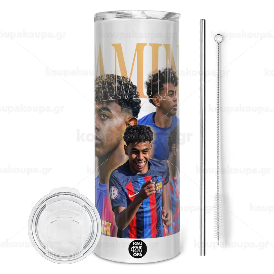 lamine yamal FCB, Tumbler stainless steel 600ml, with metal straw & cleaning brush