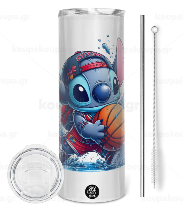 Stitch Basketball, Tumbler stainless steel 600ml, with metal straw & cleaning brush
