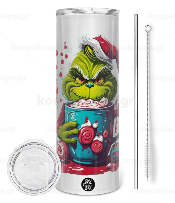 Giggling Grinchy Galore, Tumbler stainless steel 600ml, with metal straw & cleaning brush