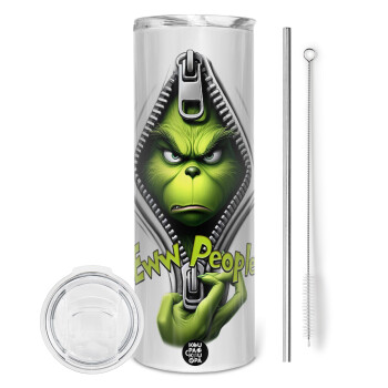 Grinch, eww people, Tumbler stainless steel 600ml, with metal straw & cleaning brush