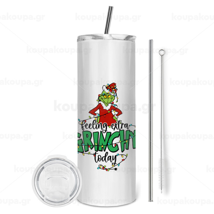 Grinch Feeling Extra Grinchy Today, Tumbler stainless steel 600ml, with metal straw & cleaning brush