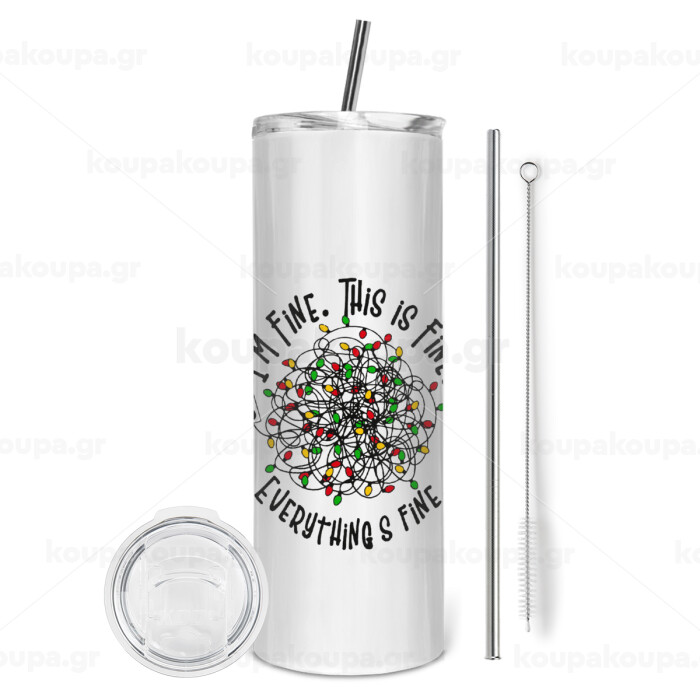 It's Fine I'm Fine Everything Is Fine, Tumbler stainless steel 600ml, with metal straw & cleaning brush