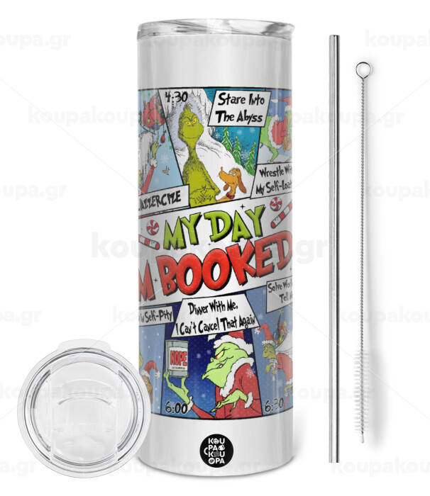 My Day Grinch, Tumbler stainless steel 600ml, with metal straw & cleaning brush