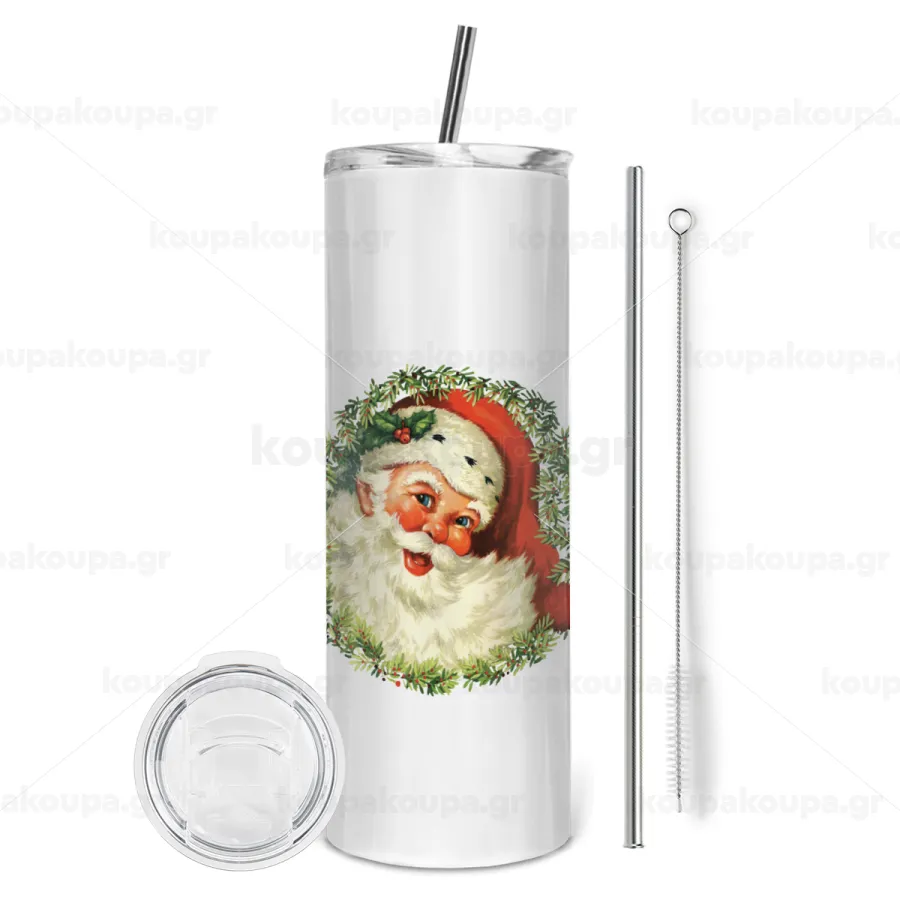 Santa Claus, Tumbler stainless steel 600ml, with metal straw & cleaning brush