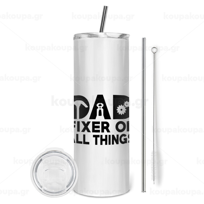 DAD, fixer of all thinks, Tumbler stainless steel 600ml, with metal straw & cleaning brush