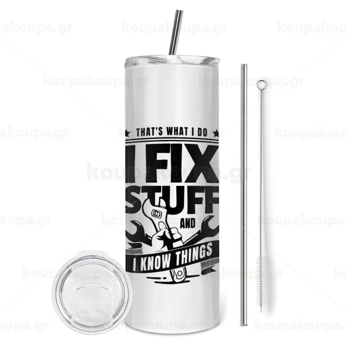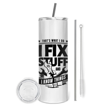I fix stuff, Tumbler stainless steel 600ml, with metal straw & cleaning brush