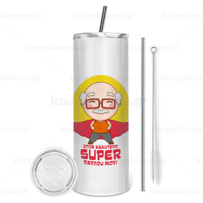 To my best Super Grandpa!, Tumbler stainless steel 600ml, with metal straw & cleaning brush