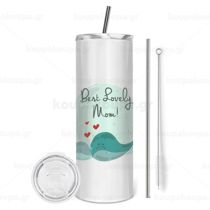 Mothers Day, whales, Tumbler stainless steel 600ml, with metal straw & cleaning brush