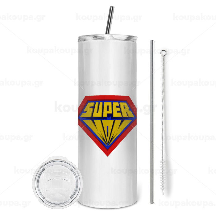Super Mom 3D, Tumbler stainless steel 600ml, with metal straw & cleaning brush