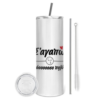 Σ΄ αγαπώ τόοοοοοσο πολύ!!!, Tumbler stainless steel 600ml, with metal straw & cleaning brush