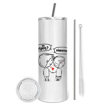 Τι έχεις? Τίποτα!, Tumbler stainless steel 600ml, with metal straw & cleaning brush