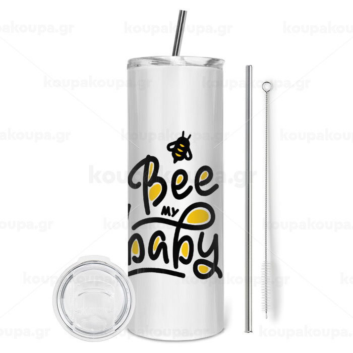 Bee my BABY!!!, Tumbler stainless steel 600ml, with metal straw & cleaning brush
