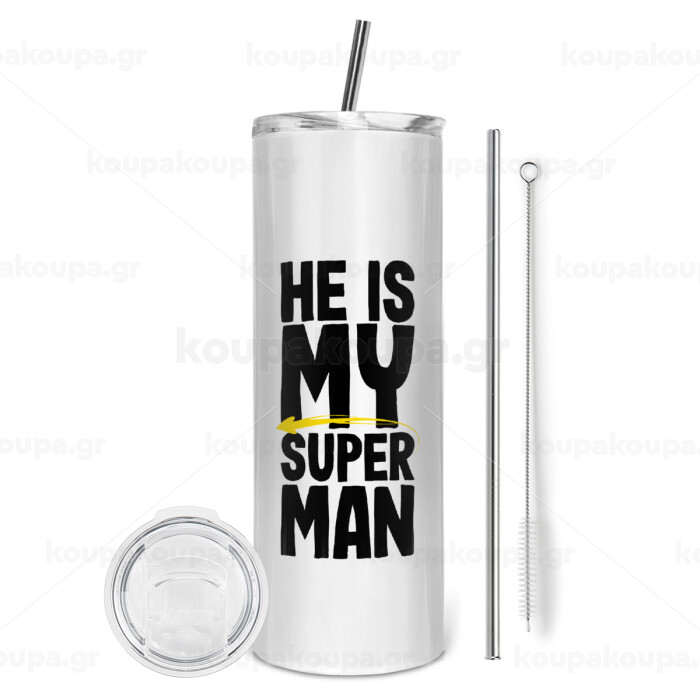 He is my superman, Tumbler stainless steel 600ml, with metal straw & cleaning brush