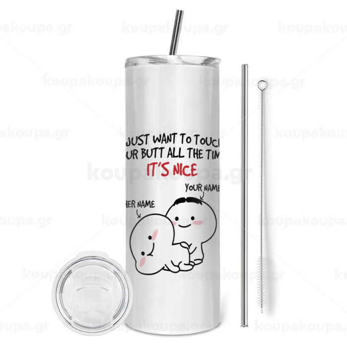I Just Want To Touch Your Butt All The Time, Tumbler stainless steel 600ml, with metal straw & cleaning brush