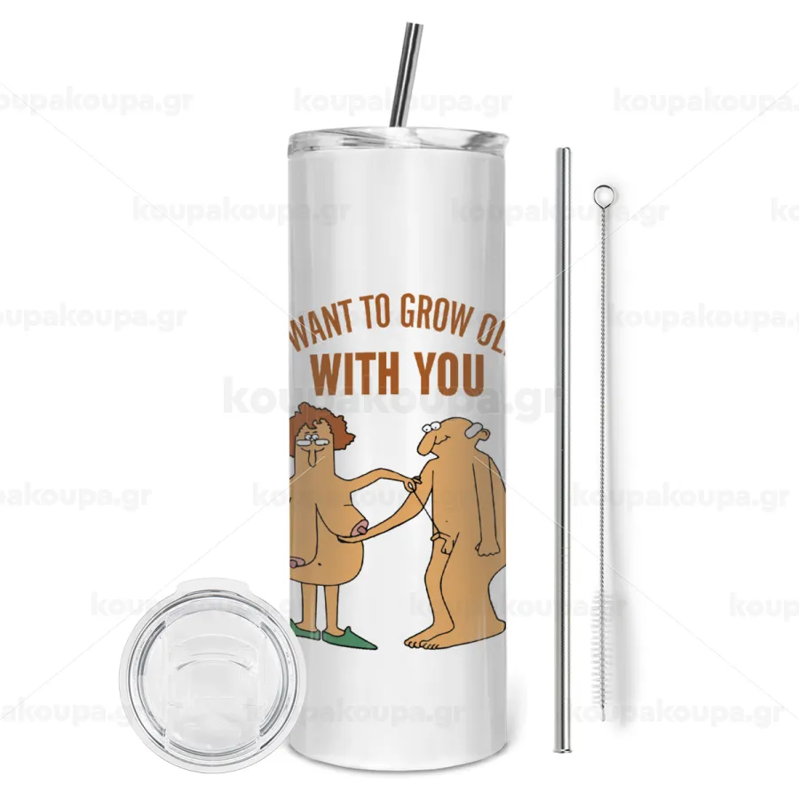 I want to grow old with you, Tumbler stainless steel 600ml, with metal straw & cleaning brush