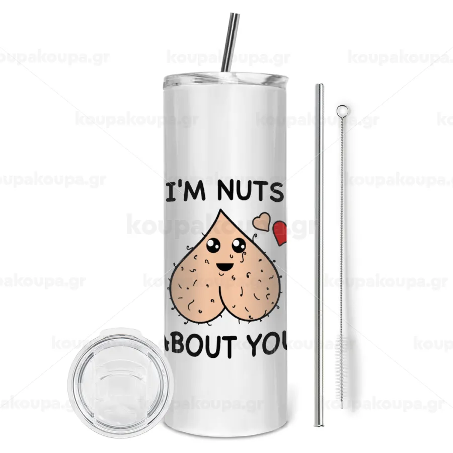 I'm Nuts About You, Tumbler stainless steel 600ml, with metal straw & cleaning brush