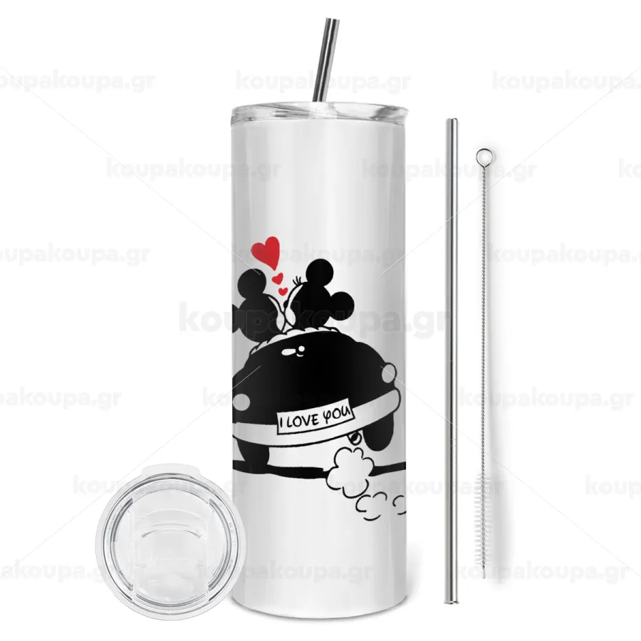Love Car, Tumbler stainless steel 600ml, with metal straw & cleaning brush