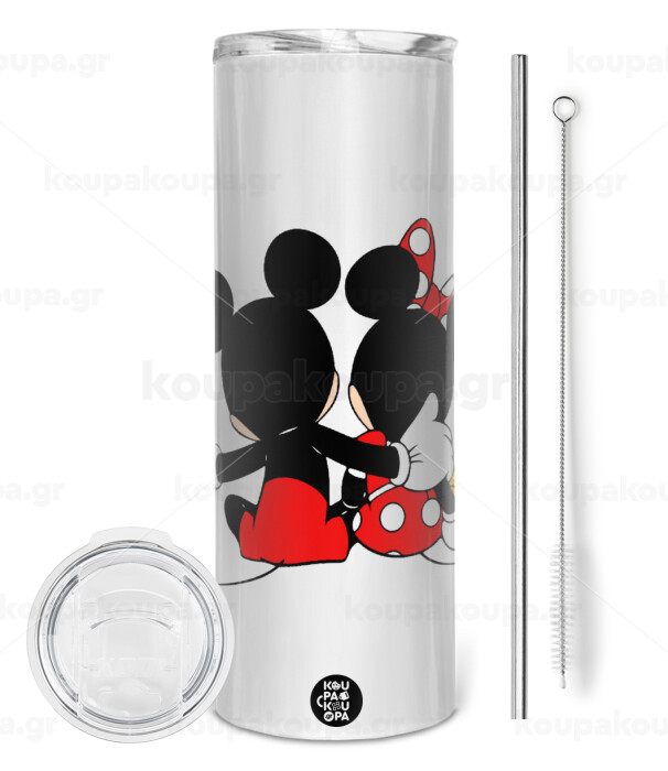 mickey and minnie hags, Tumbler stainless steel 600ml, with metal straw & cleaning brush