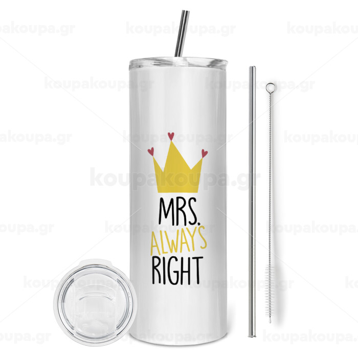 Mrs "Always" right, Tumbler stainless steel 600ml, with metal straw & cleaning brush