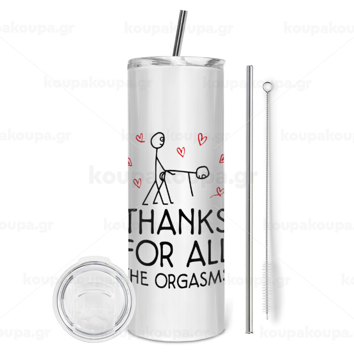 Thanks for all the orgasms, Tumbler stainless steel 600ml, with metal straw & cleaning brush