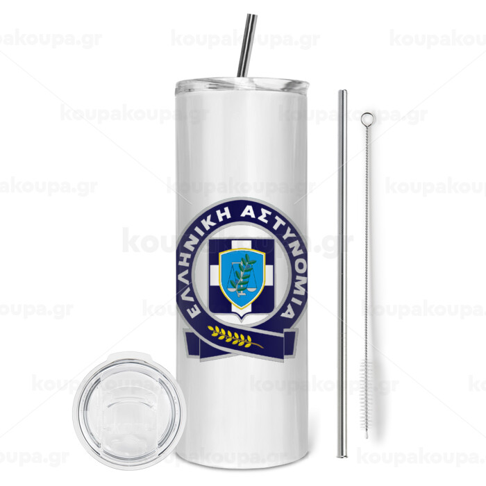 Ελληνική Αστυνομία, Tumbler stainless steel 600ml, with metal straw & cleaning brush