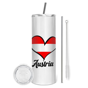 Austria flag, Tumbler stainless steel 600ml, with metal straw & cleaning brush