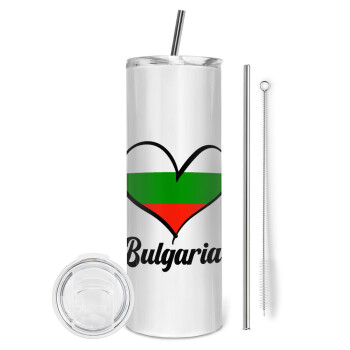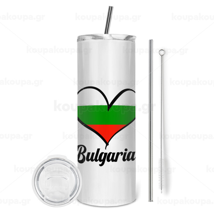 Bulgaria flag, Tumbler stainless steel 600ml, with metal straw & cleaning brush