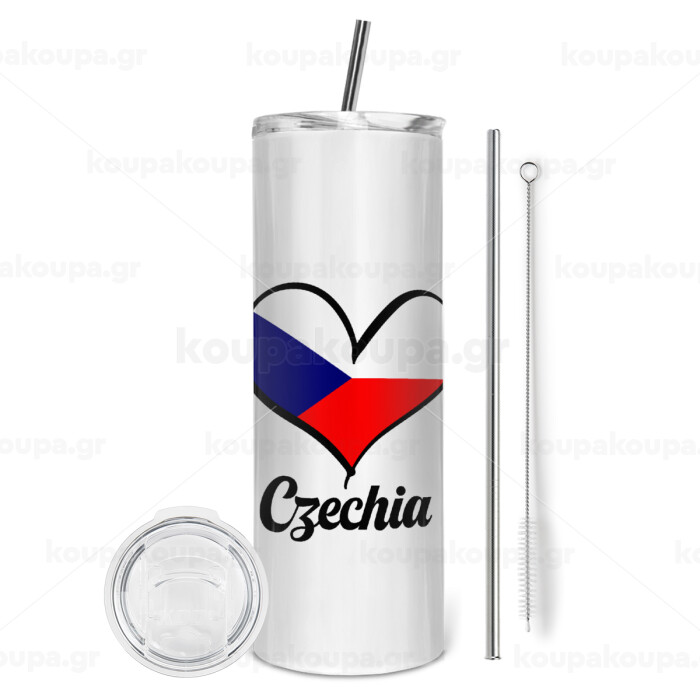 Czechia flag, Tumbler stainless steel 600ml, with metal straw & cleaning brush