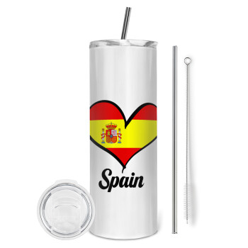 Spain flag, Tumbler stainless steel 600ml, with metal straw & cleaning brush