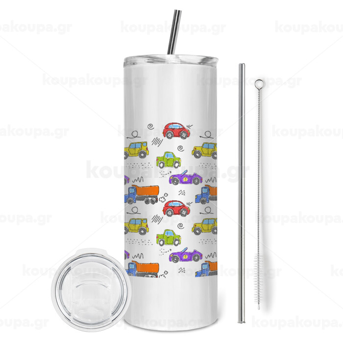 Colorful cars, Tumbler stainless steel 600ml, with metal straw & cleaning brush