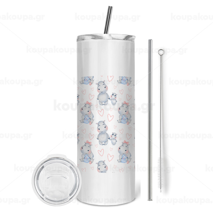 Hippo, Tumbler stainless steel 600ml, with metal straw & cleaning brush