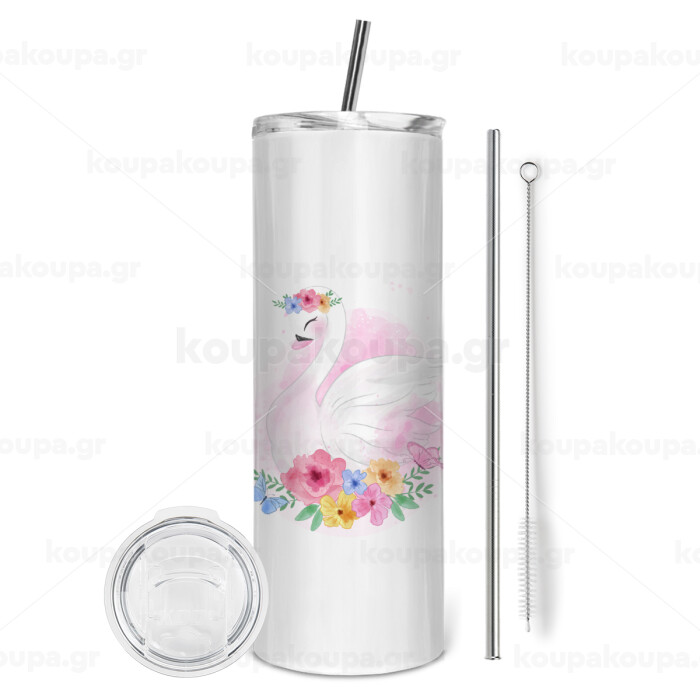 White swan, Tumbler stainless steel 600ml, with metal straw & cleaning brush