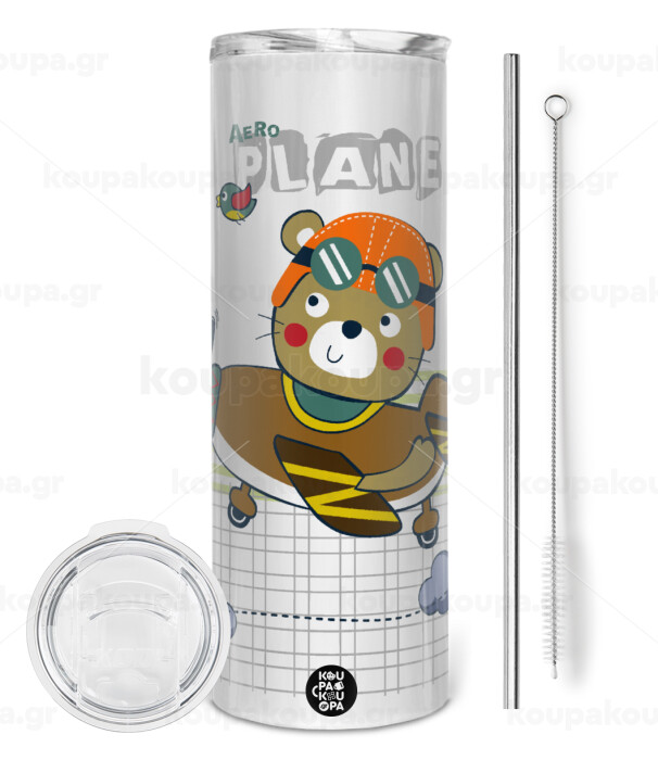 Kids Plane, Tumbler stainless steel 600ml, with metal straw & cleaning brush
