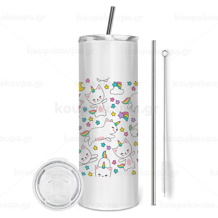 Cats unicorns, Tumbler stainless steel 600ml, with metal straw & cleaning brush