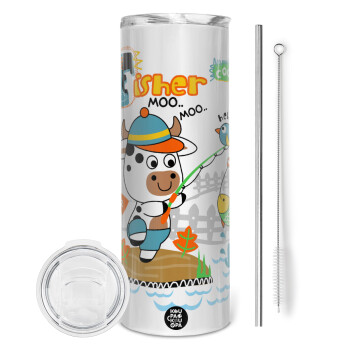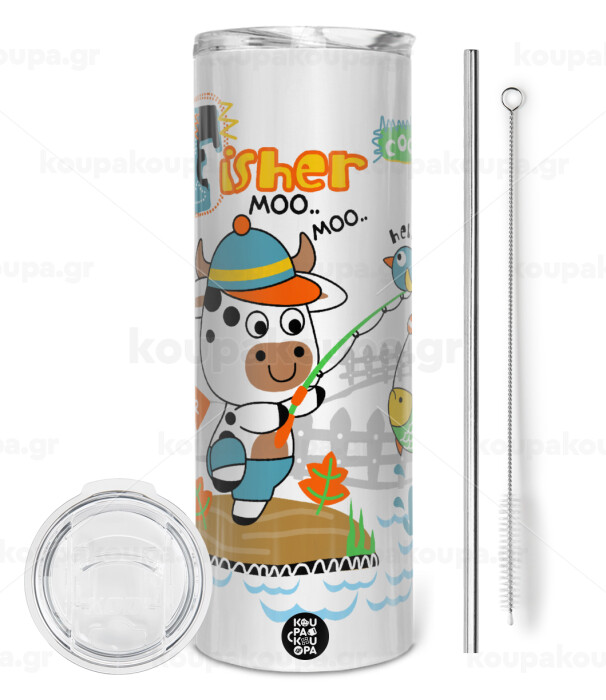 Kids Fisherman, Tumbler stainless steel 600ml, with metal straw & cleaning brush