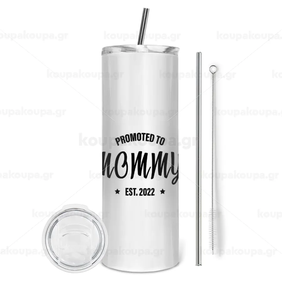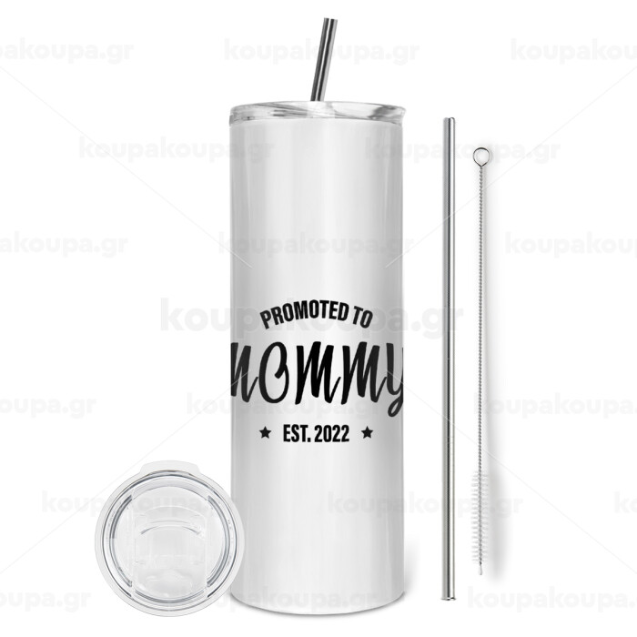 Promoted to Mommy, Tumbler stainless steel 600ml, with metal straw & cleaning brush