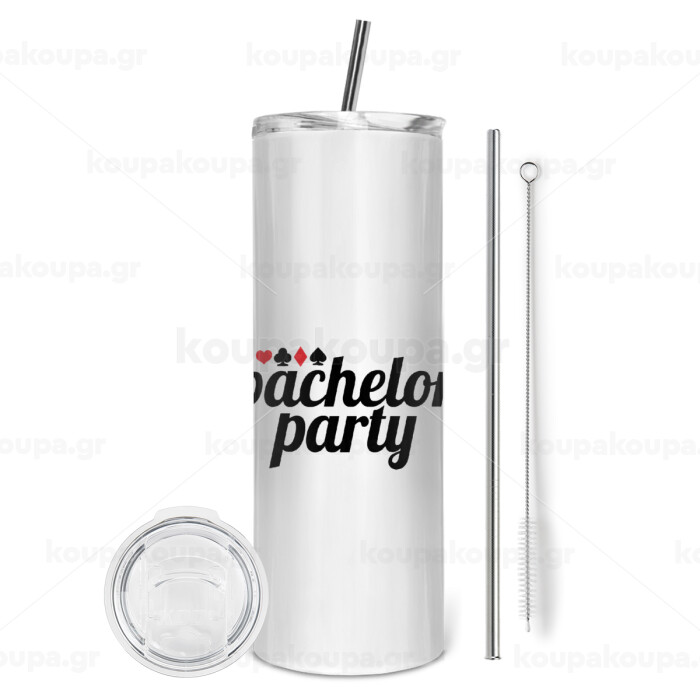 Bachelor party, Tumbler stainless steel 600ml, with metal straw & cleaning brush