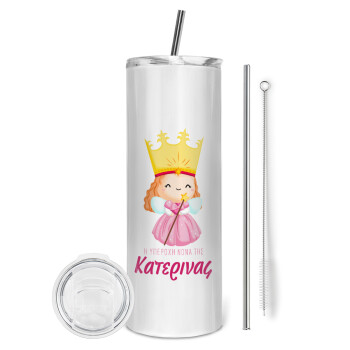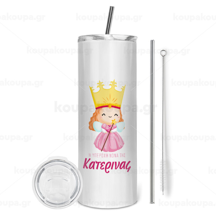 Η νονά μου, πριγκίπισσα, Tumbler stainless steel 600ml, with metal straw & cleaning brush