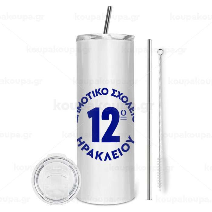 Έμβλημα Σχολικό λευκή, Tumbler stainless steel 600ml, with metal straw & cleaning brush