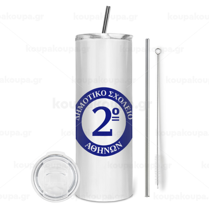 Έμβλημα Σχολικό μπλε, Tumbler stainless steel 600ml, with metal straw & cleaning brush