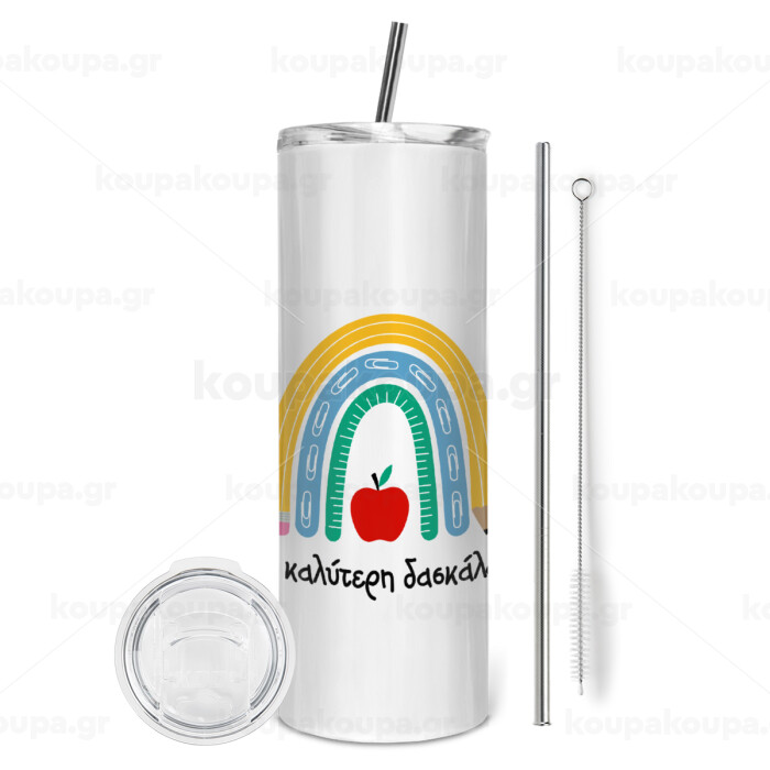 Η καλύτερη δασκάλα, Tumbler stainless steel 600ml, with metal straw & cleaning brush