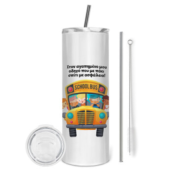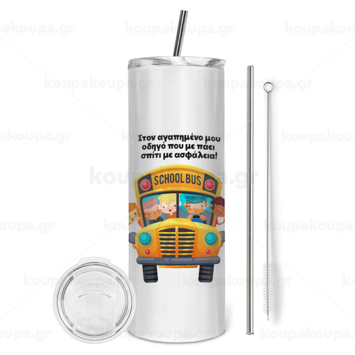 Στον αγαπημένο μου οδηγό που με πάει σπίτι με ασφάλεια!, Tumbler stainless steel 600ml, with metal straw & cleaning brush