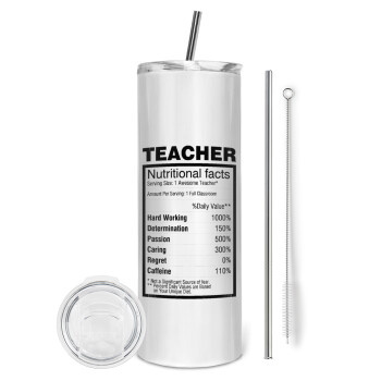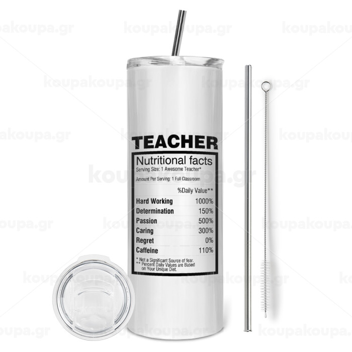 teacher nutritional facts, Tumbler stainless steel 600ml, with metal straw & cleaning brush