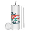 Best teacher in the World!, Tumbler stainless steel 600ml, with metal straw & cleaning brush