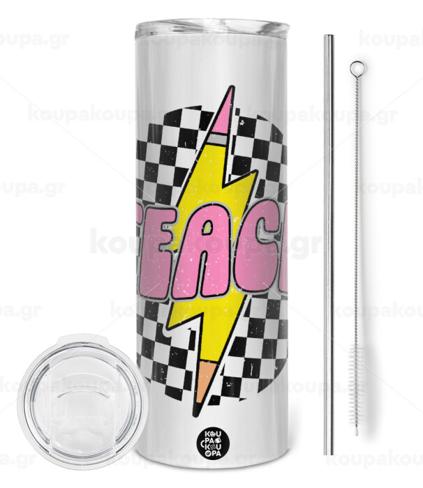 Teach, Tumbler stainless steel 600ml, with metal straw & cleaning brush